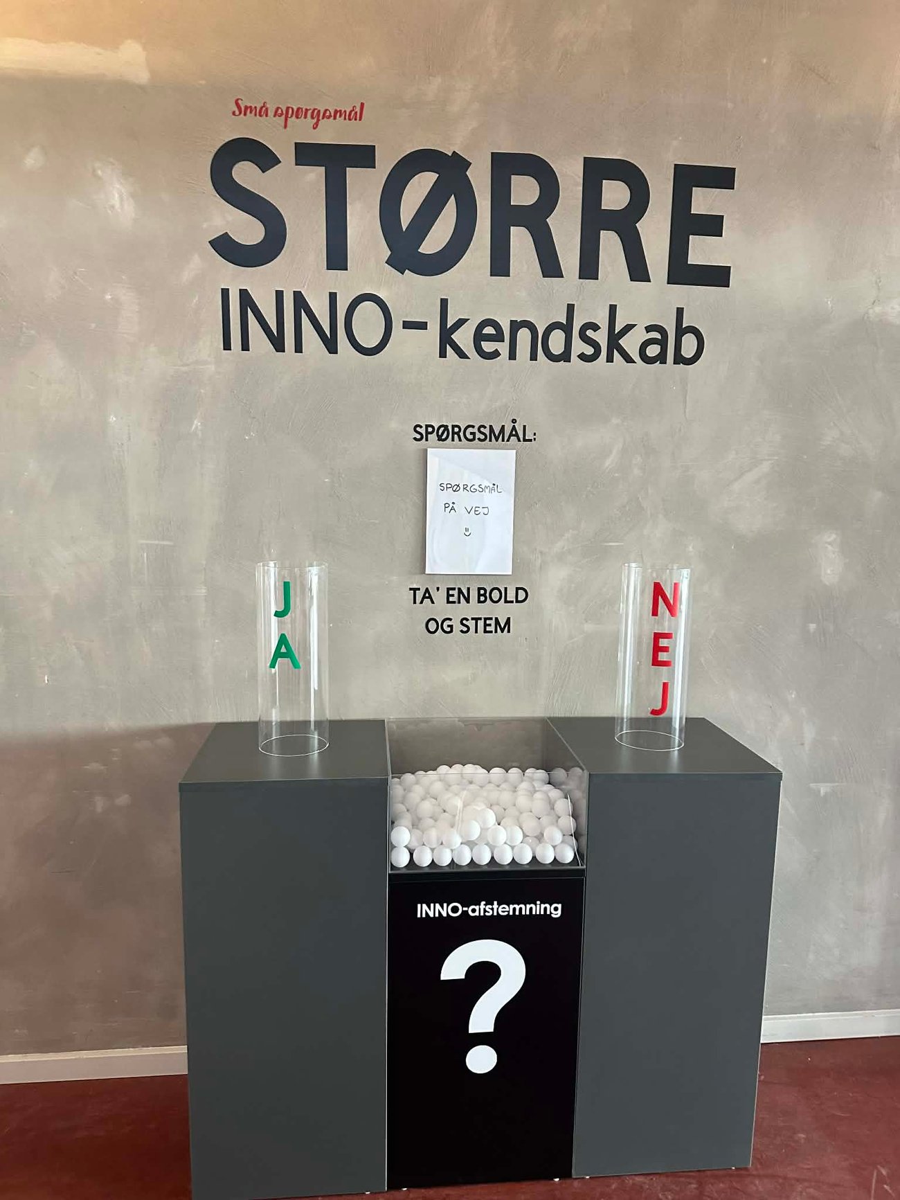Her kan du stemme ved at kaste en bold i enten JA-røret eller NEJ-røret.